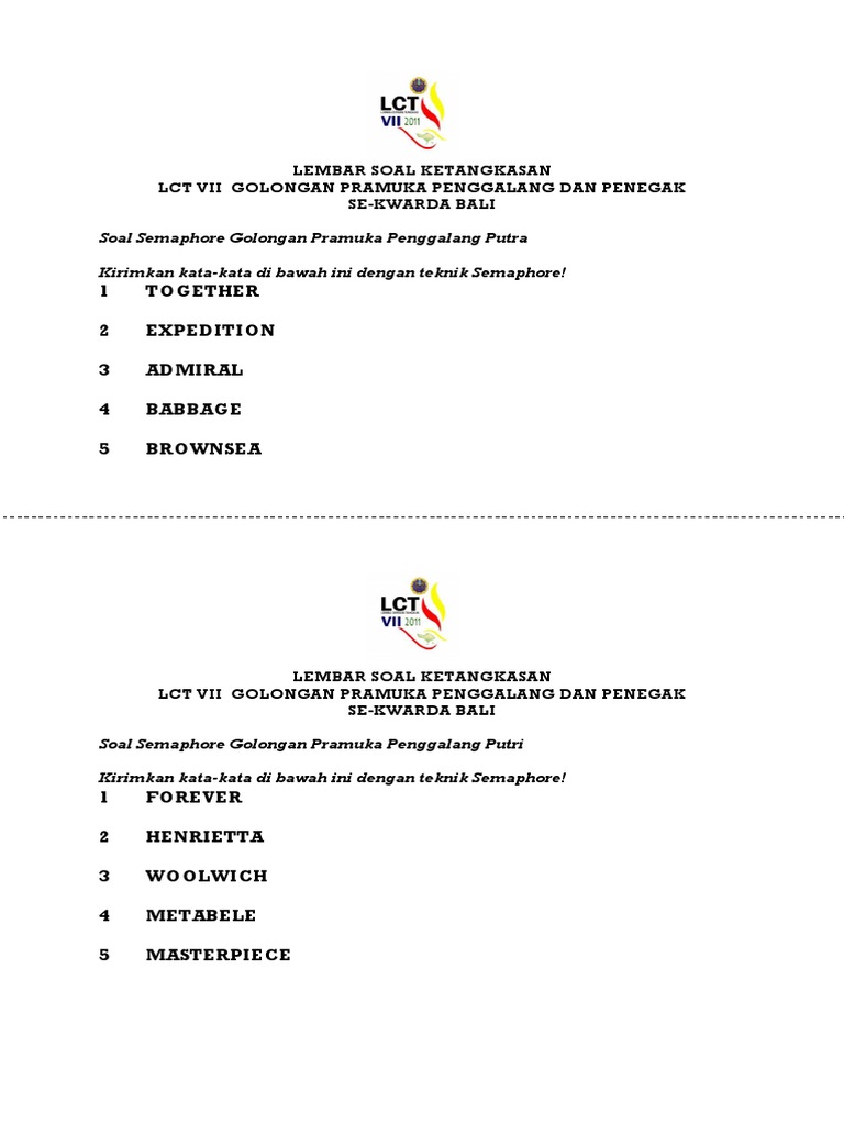 Soal semaphore golongan pramuka penggalang putra.