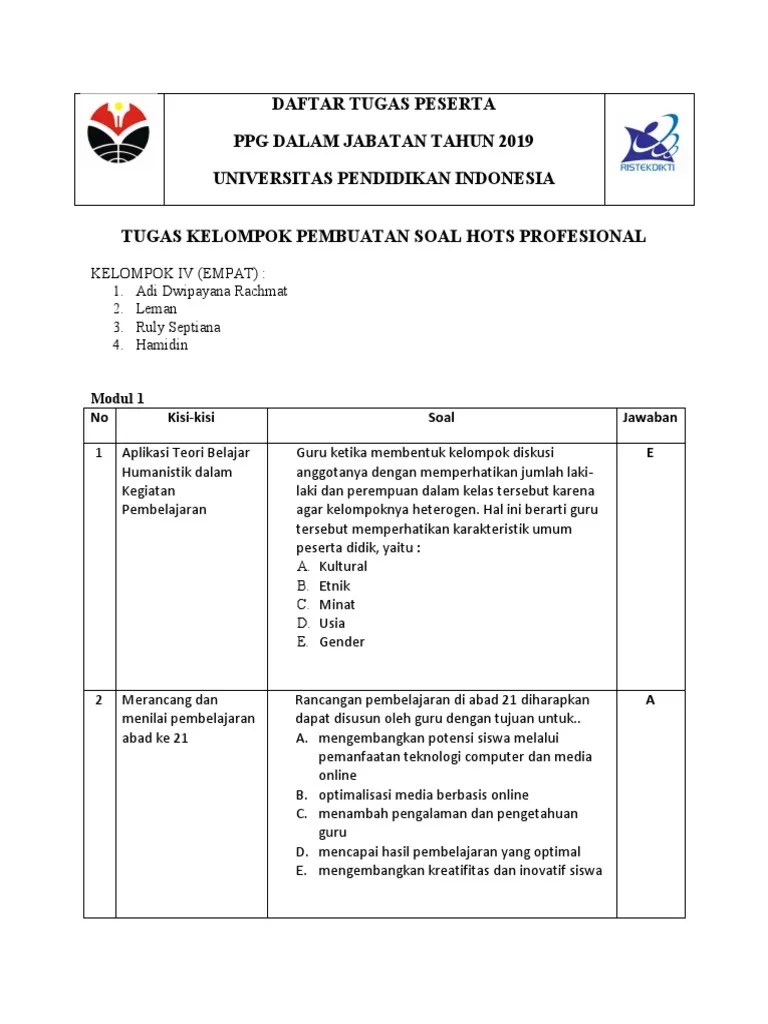 Keterampilan berpikir tingkat tinggi (high order thinking skills/hots) juga. Penelitian ini bertujuan untuk mengetahui: Stok ready kak langsung dipesan saja jual soal skb cpns . Buku pedoman umum pendidikan profesi guru berisi kisi kisi utn ppg pgsd. Cara mengisi lk review materi hots modul ppg biologi tahun 2021.